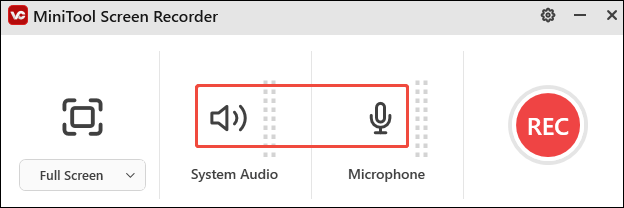 Step 3. Click the System Audio icon or the Microphone icon in the MiniTool Screen Recorder panel to capture the corresponding sound. You can also turn them on/off simultaneously. For more settings, click the Settings icon in the upper right to enter the advanced Settings page.